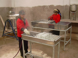 La fabrica fue de iniciativa del grupo de mujeres de Rumipamba para crear y valorizar una producción artesanal local. La producción que va a empezar en abril 2003 creará otras